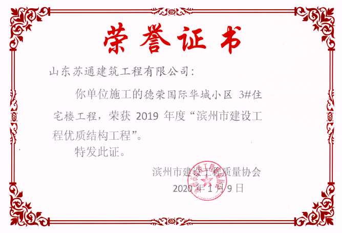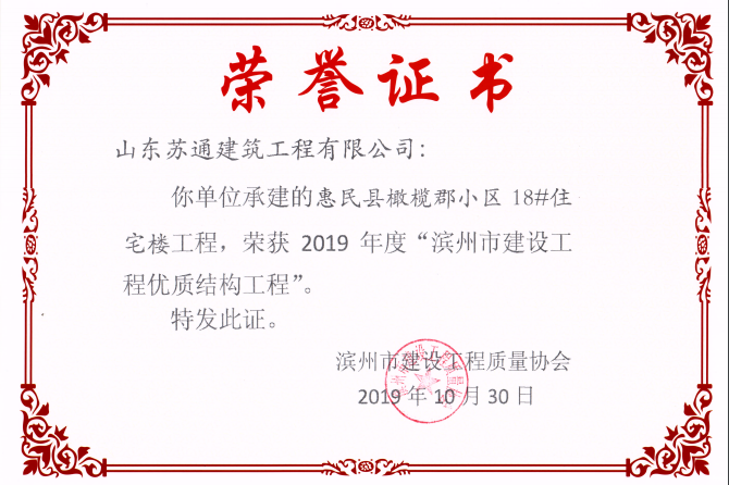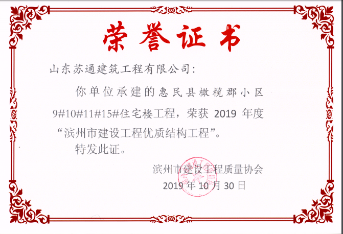 山東蘇通建筑工程有限公司,創(chuàng)建于2009年8月。目前擁有房屋建筑工程施工總承包壹級、市政公用工程施工總承包叁級、水利水電工程施工總承包叁級資質,同時還具有建筑裝修裝飾工程專業(yè)承包貳級、消防設施工程專業(yè)承包貳級、鋼結構工程專業(yè)承包叁級、建筑機電安裝工程專業(yè)承包叁級等專業(yè)承包資質。 公司總部坐落于山東省濱州市濱城區(qū)黃河十二路877號,現(xiàn)有辦公面積約2000平方米,機構設黨支部工會辦公室、總經(jīng)理辦公室、綜合辦公室、工程管理部、經(jīng)營預算部、資產財務部、材料設備部、運行管理部、法律事務部等多個職能部門。公司管理體系已經(jīng)通過了GB/T 19001及GB/T 50430質量管理體系、GB/T 24001環(huán)境管理體系(EMS)、GB/T 28001職業(yè)健康安全管理體系(OHSMS)等體系的認證。 公司承建完工了濱州市建大教師之家、建大清怡苑、香格里拉水岸綠城住宅小區(qū)、雙泰建大城、曲阜崇德公館住宅小區(qū)、北海新區(qū)御景藍灣住宅小區(qū)、沾化德榮國際華城住宅小區(qū)、惠民橄欖郡住宅小區(qū)等工程項目,目前在建工程項目有:濱州市頤高國際電子商務產業(yè)園住宅小區(qū)項目、濱州市東盛國際項目、高新區(qū)建大中央華府住宅小區(qū)項目、濱州市融匯新里程住宅小區(qū)項目、濱州市建大秦皇壹號住宅小區(qū)項目、濱州市森林花...